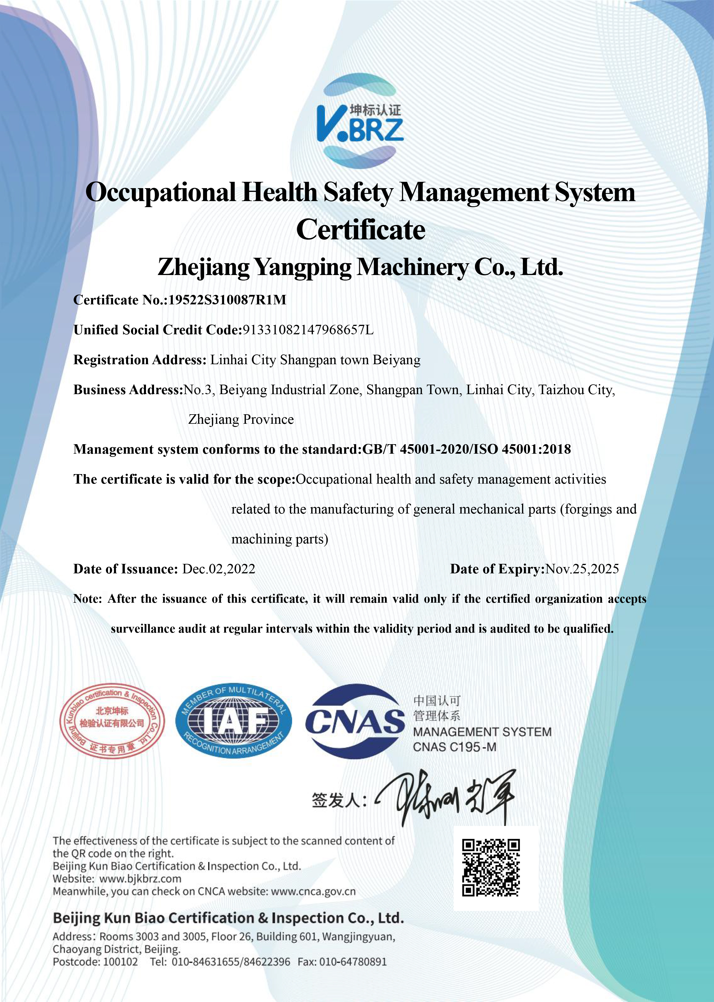 Zhejiang Yangping Machinery Co., Ltd., founded in 1991 and located at No. 3, No. 5 Road, Beiyang Industrial Zone, East Development Zone, Laihai City, Zhejiang Province, is a private enterprise specializing in forging and machining of automobiles, motorcycles and sewing machines. The company now has first-class domestic production and inspection equipment and more than 20 forging production lines, There are more than 50 1600T.1000T.630T.400T. 160T and CNC machining lines, 30 CNC lathes and 2 polishing lines, which can process various metal forgings, such as aluminum alloy, steel, stainless steel and copper alloy.